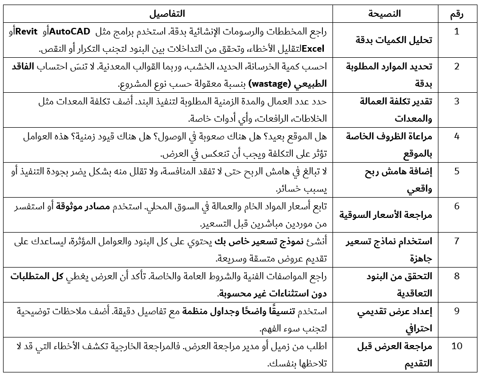 ✅ نصائح لتقديم عروض دقيقة ومربحة: