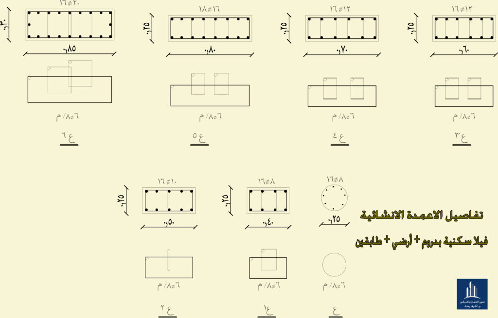 يحتوي على 8 أسياخ قطر 16مم، ووزن المتر الطولي للسيخ الواحد = 1.57 كجم.